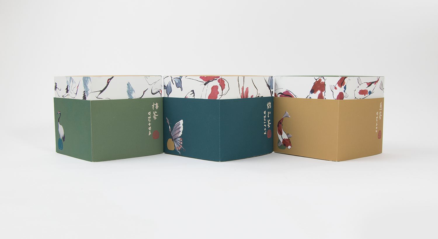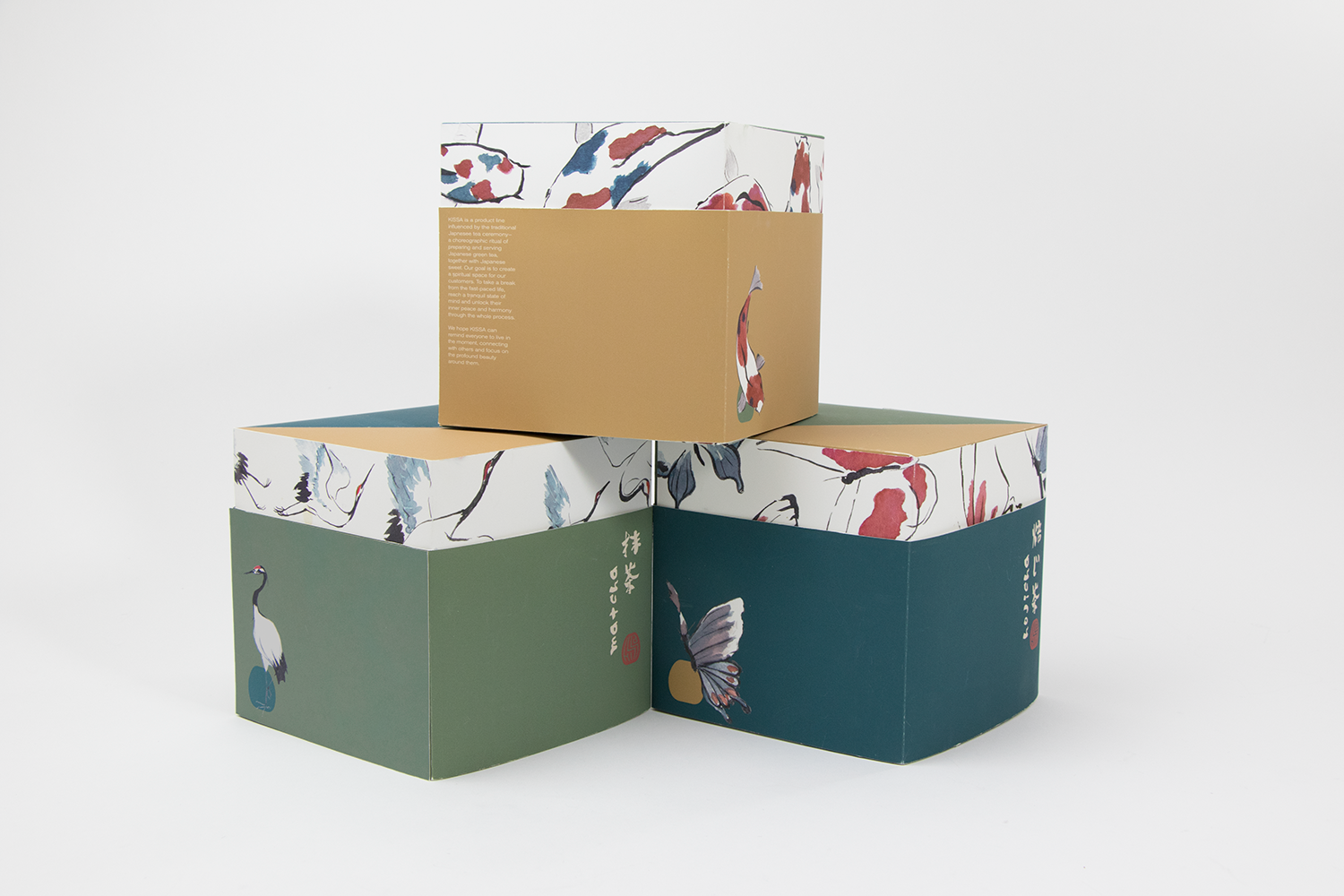• Wagashi packaging incorporating Japanese Buddhist philosophy through symbolic elements.
