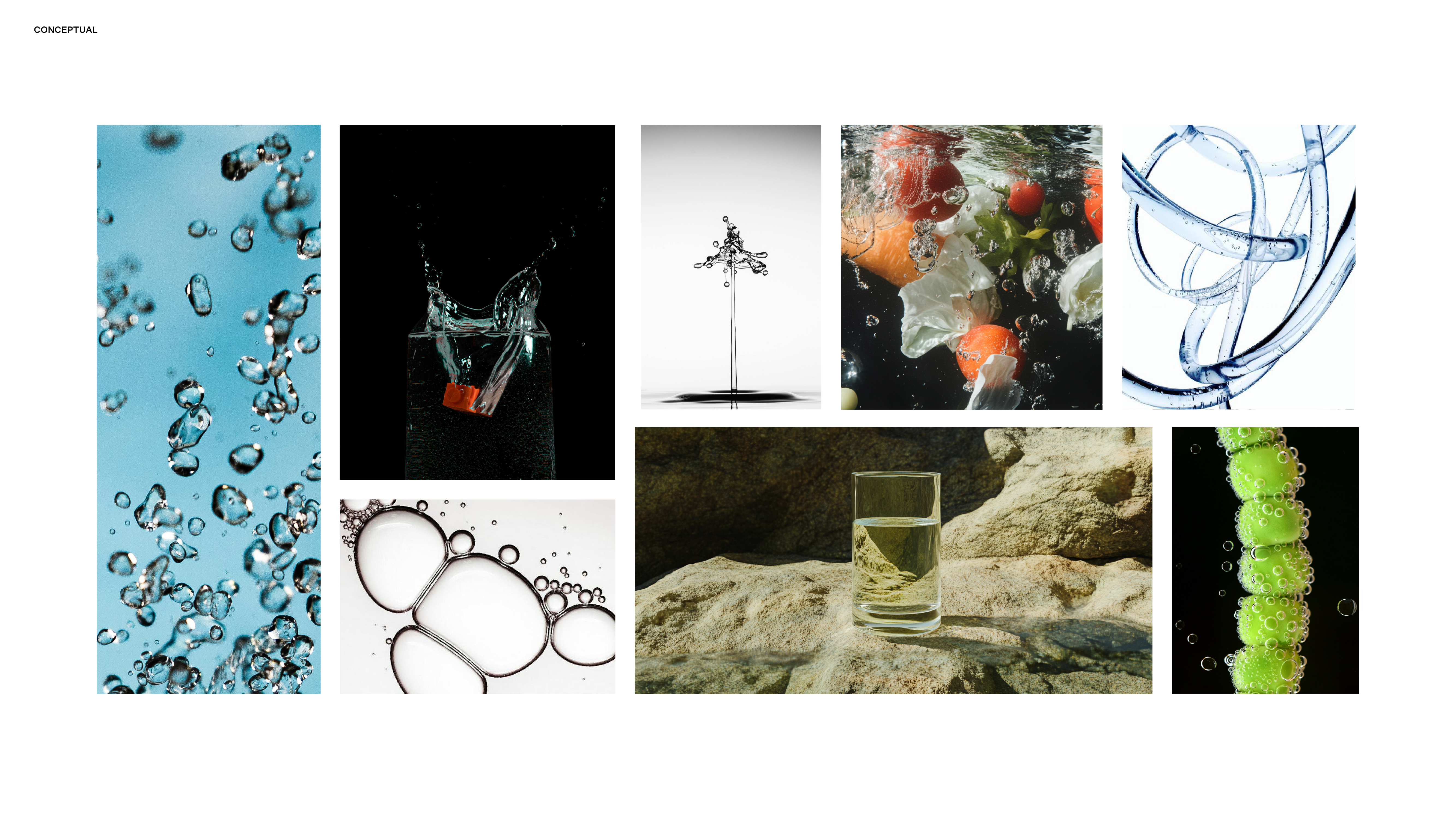 Conceptual visuals use light, water, and reflection to evoke vitality and purity, reinforcing the idea of light-infused hydration as both science and experience.