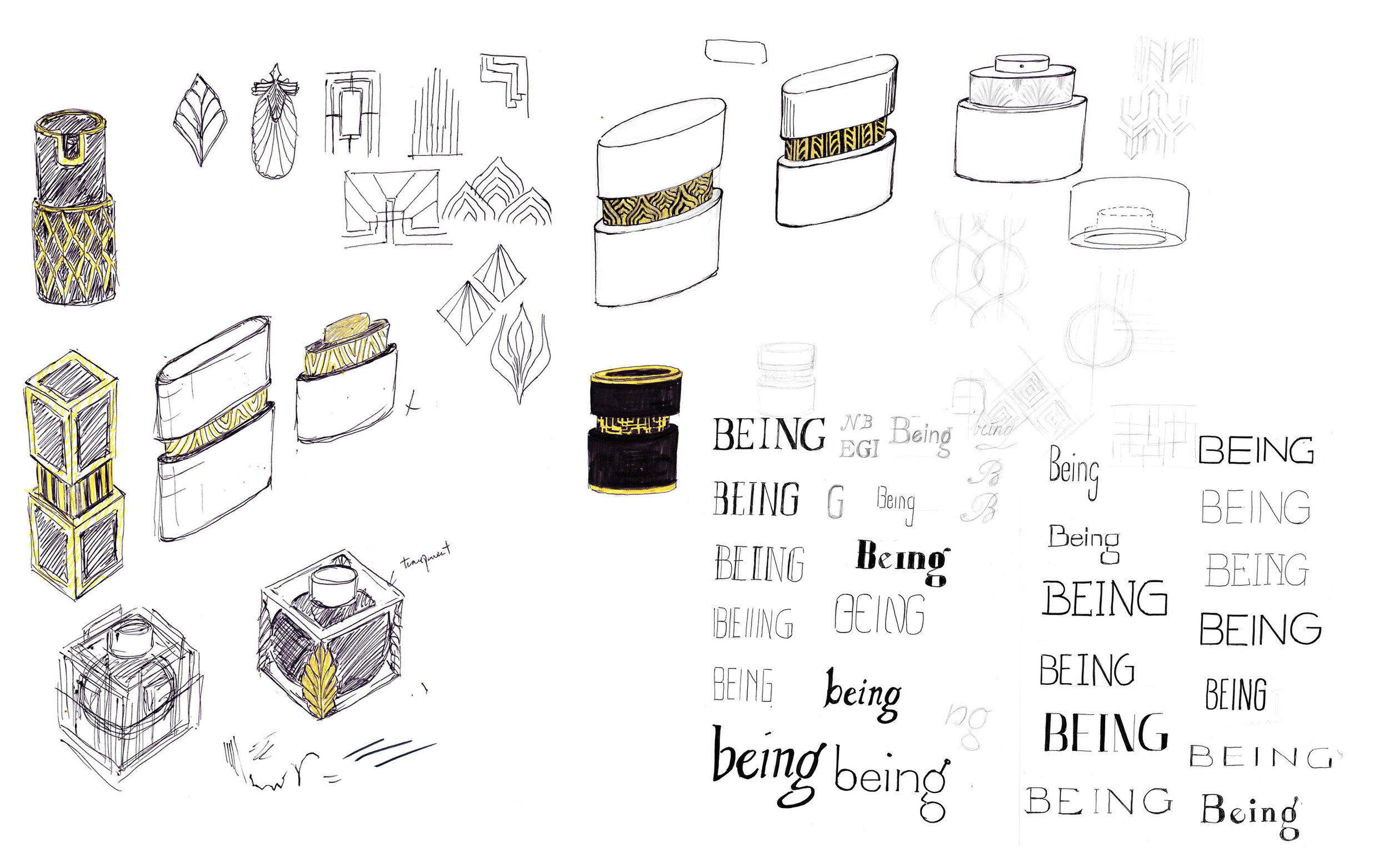 Being is an oriental, sensual fragrance that embodies the confidence, elegance, and sophistication of modern women. This project, mentored by Marc Rosen, embraces Art Deco aesthetics to create a comprehensive brand identity and packaging design that extends beyond the fragrance itself.