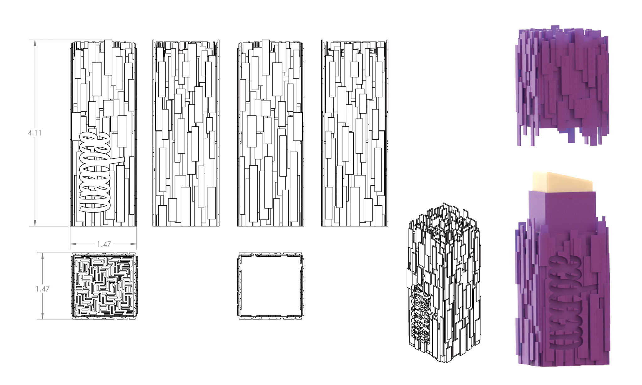 • Primary packaging designs utilizing 3D design and modeling techniques, creating unique structural elements that blur gender lines.