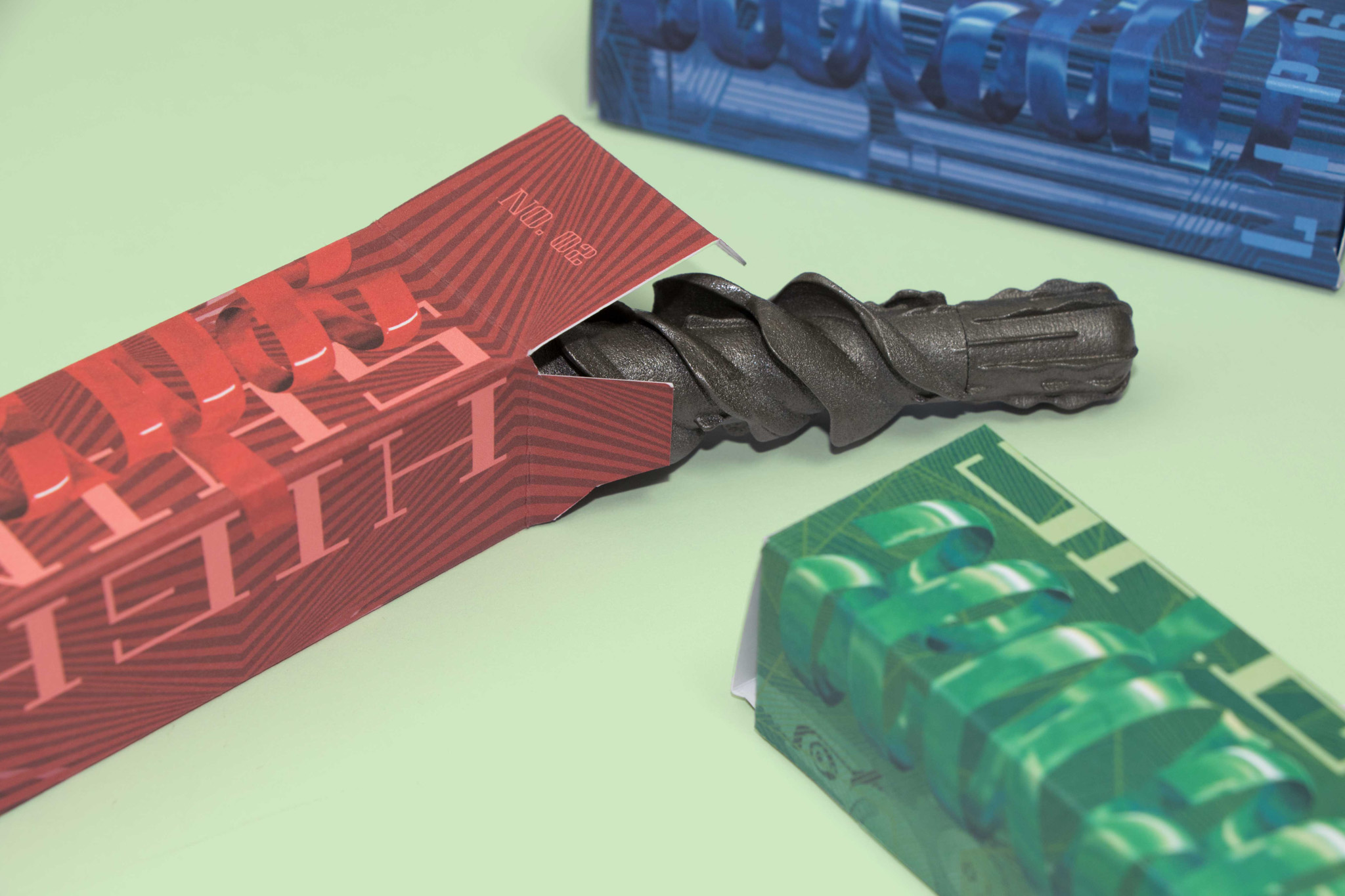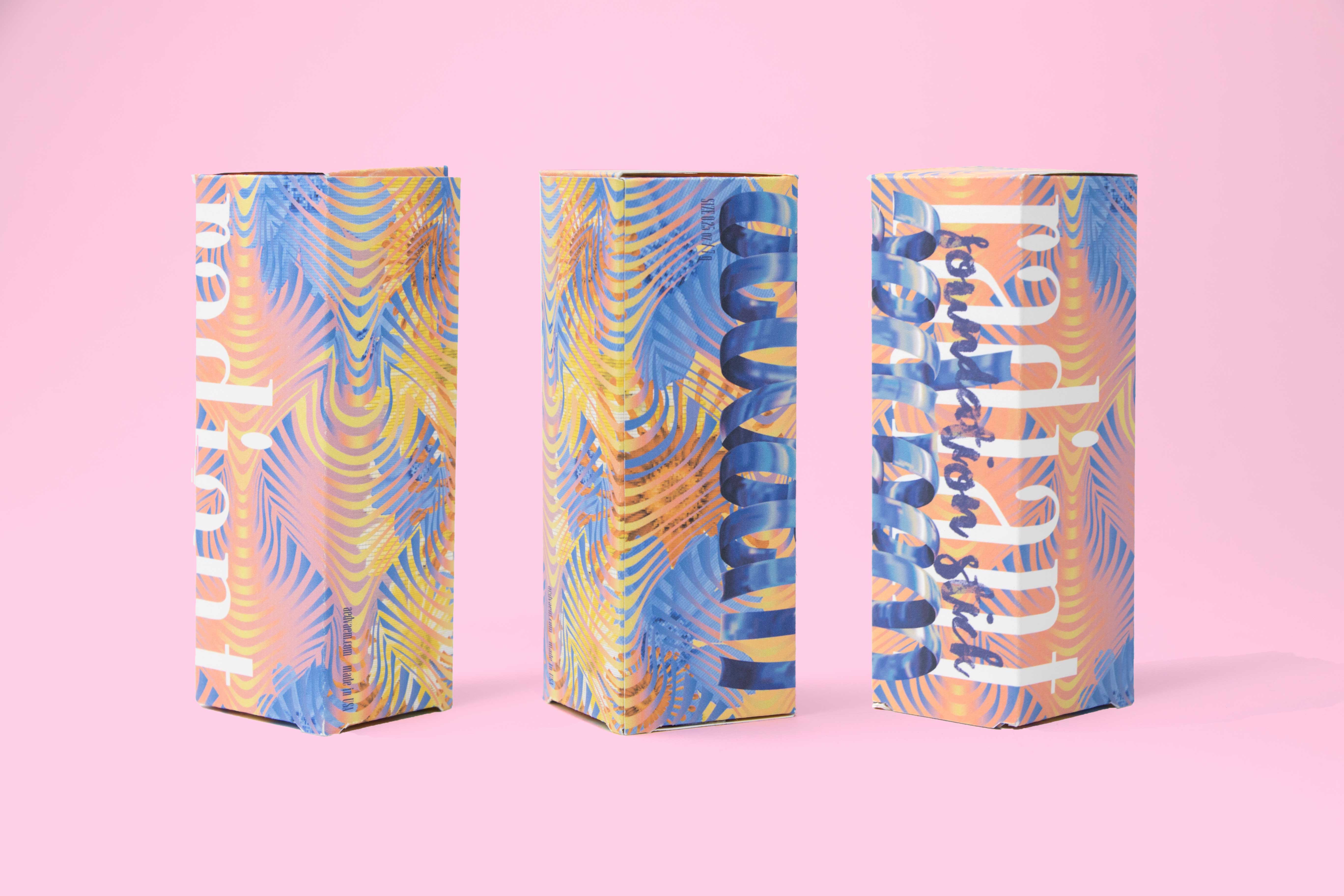 • Secondary packaging featuring custom branding, patterns, and illustrations that amplify gender qualities to the point of ambiguity.