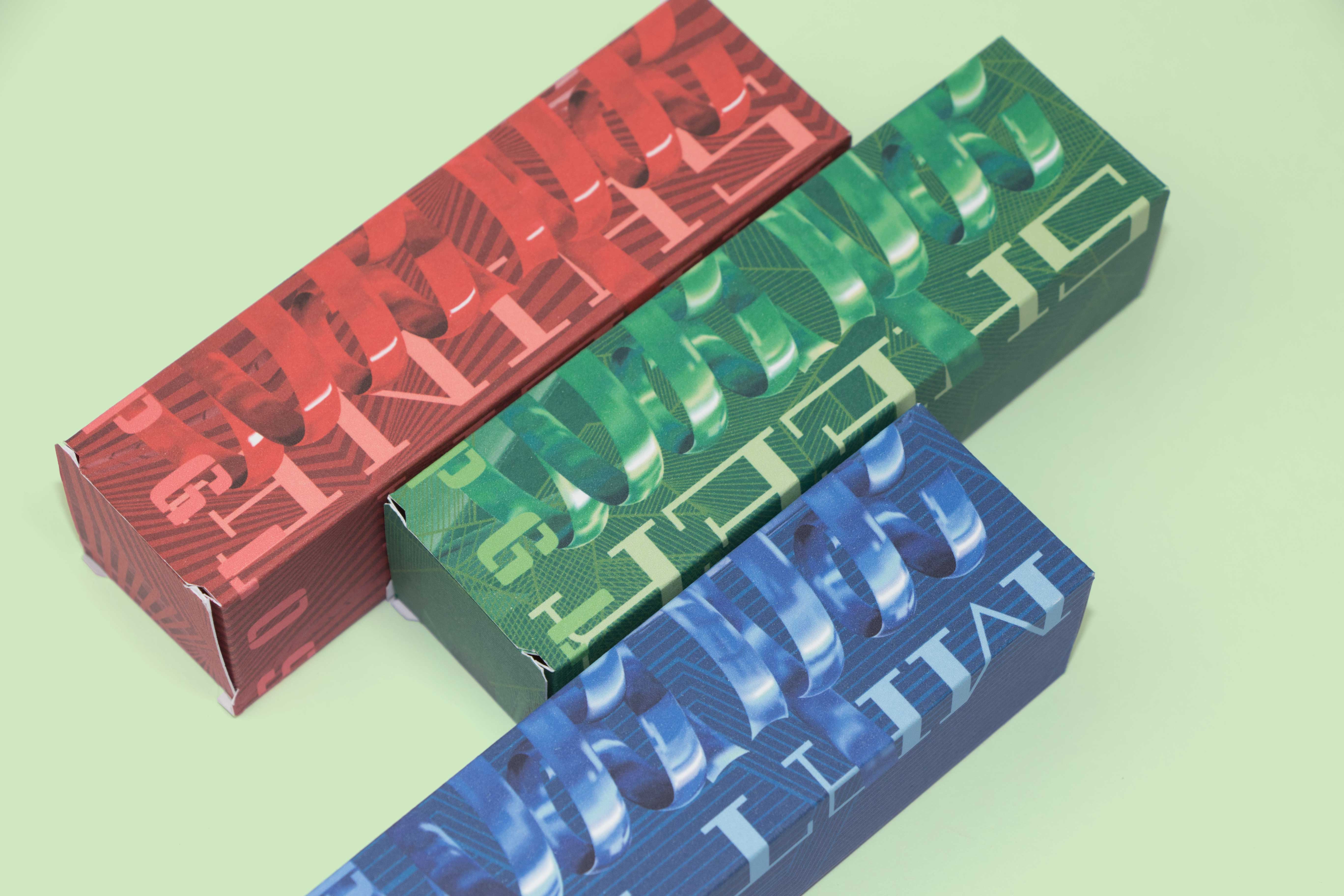 The secondary packages are designed depending on female preference. Condensed, hand script and gothic typefaces are used since they are usually associated with femininity. Cones, spheres, and organic shapes are used as patterns. Iridescent effect background and pastel color tones are also added as decorated elements.